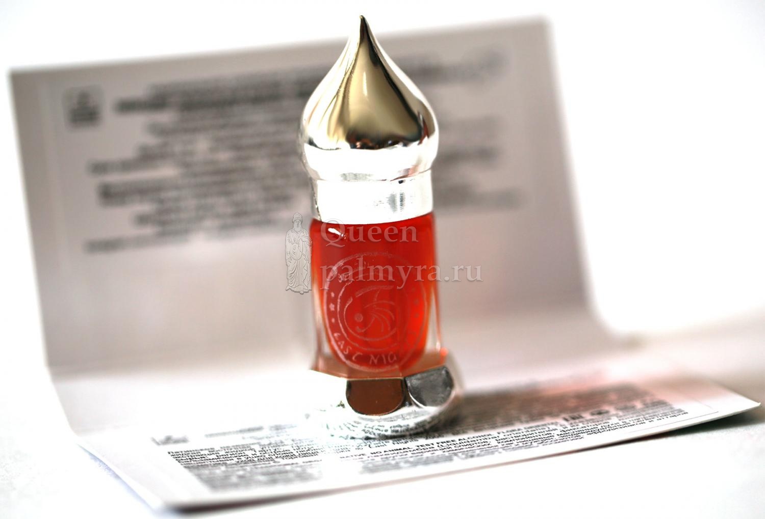 Насыщенный пряный запах феромонов. Бальзамические и острые ноты слились с цветочным вихрем. Притягивает, ложится на кожу, проникает внутрь, нашептывая в ушко слова любви!